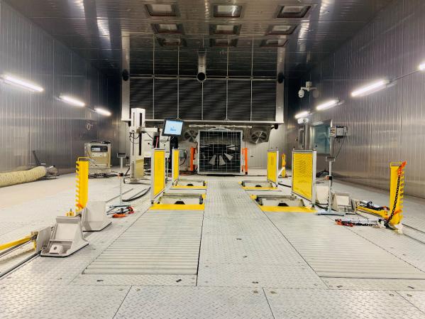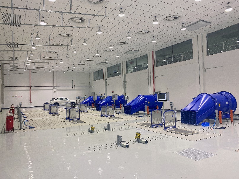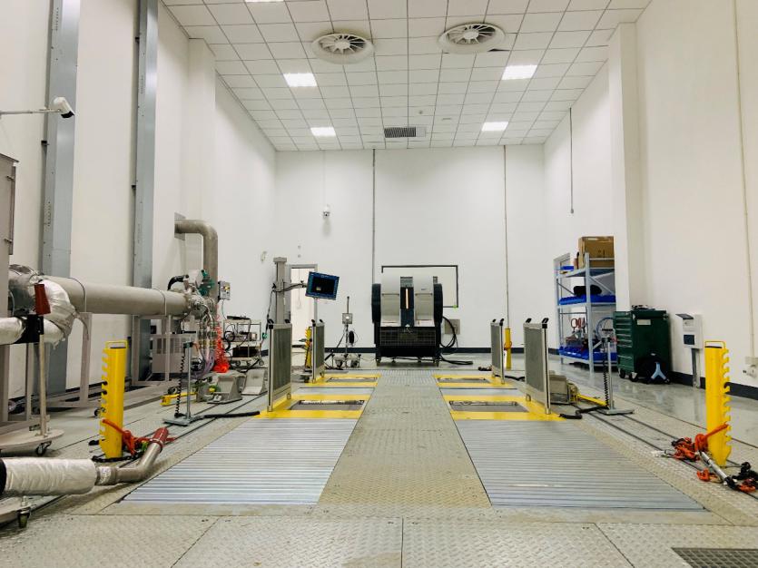 该试验间目前拥有一套4驱4电机性能排放底盘测功机、一套配有加热系统的轻型车全流排放分析系统和一个带全光谱阳光模拟系统